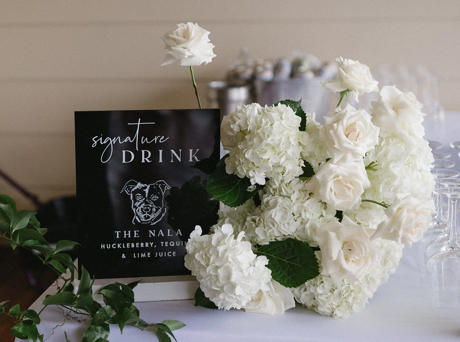 A modern take on bold, white wedding flowers at Columbia Gorge Hotel in Hood River Oregon